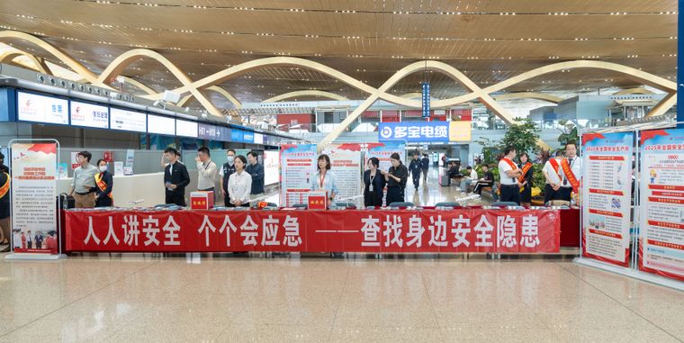 在办公区,昆明机场设置了宣传展台,向广大职工发放“安全生产月”宣传资料,集中宣传重大安全隐患判定标准、反恐安全知识、自愿报告渠道等,并向积极参与线上有奖答题的获奖员工发放安全宣传纪念品。