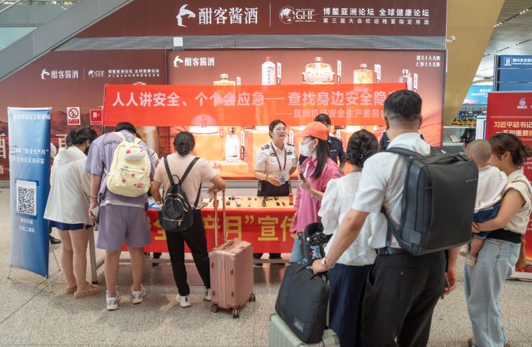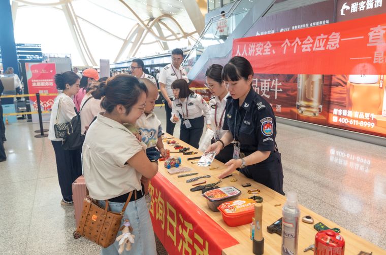 在航站楼的活动现场,昆明机场、东航云南公司、祥鹏航空公司、川航云南分公司、昆明航空公司、苏南瑞丽航空公司等单位在航站楼布置了多个咨询展台,积极融合线上、线下渠道,通过主题展板、有奖答题、知识图册和安全宣传片等途径,集中宣传民航安全生产方针政策、法律法规、安全文化、安全乘机须知、常见的旅客不安全行为和后果、生命通道布局标识和避险逃生技能等,回答公众关心关注的民航安全运行问题。