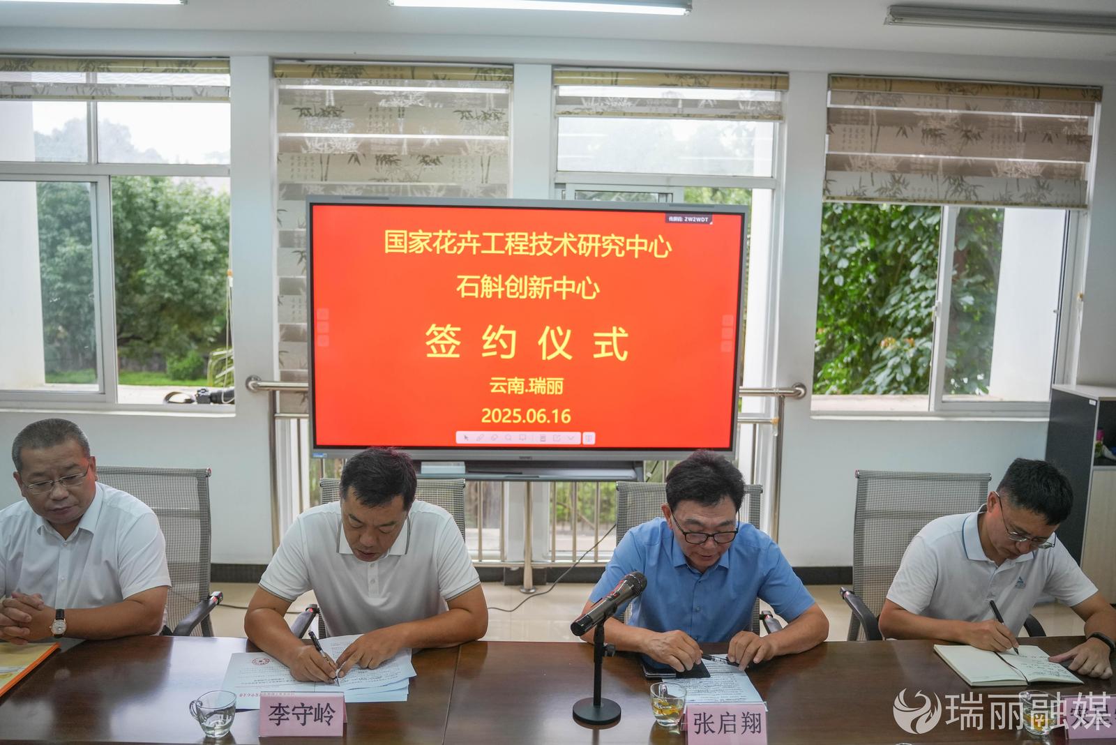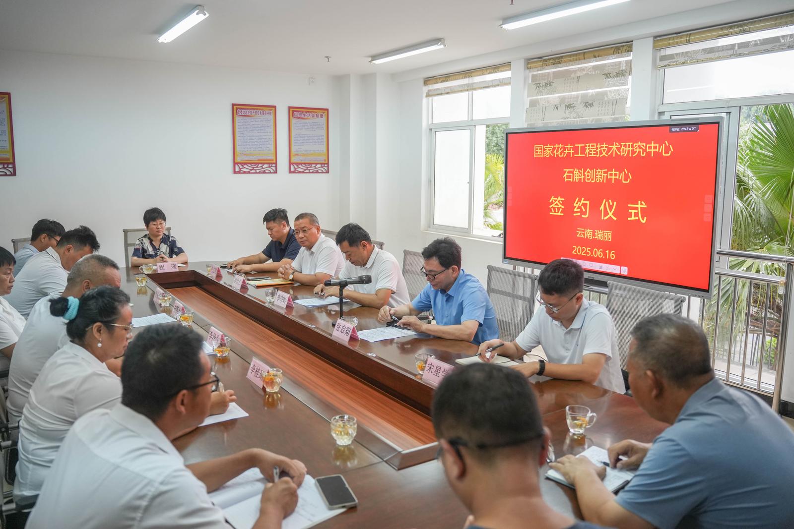 国家花卉工程技术研究中心、云南省德宏热带农业科学研究所、德宏鑫禾农业科技开发有限责任公司、瑞丽市林业和草原局相关负责人参加揭牌仪式。共建单位签署了合作协议。