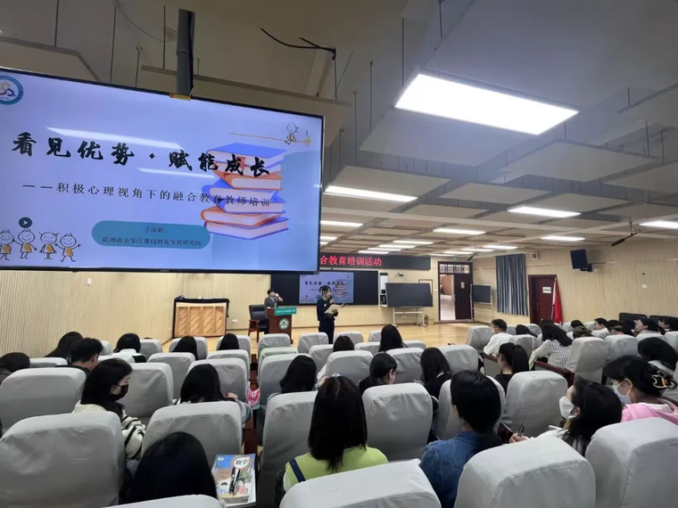 讲座中,五华区基础教育研究院心理健康教研员王泽颖以《看见优势·赋能成长——积极心理视角下的融合教育主题培训》为题,从积极心理学的角度出发,用细腻且富有感染力的语言,为教师们层层揭示了发现学生优势、助力学生茁壮成长的奇妙方法。她始终坚信每个学生都蕴含着无限的潜能,提倡教师要用发展的、充满希望的眼光去看待每一位学生。她十分注重学生的潜能发展,大力强调教育公平的重要性。