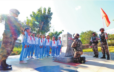界碑旁的红色传承。