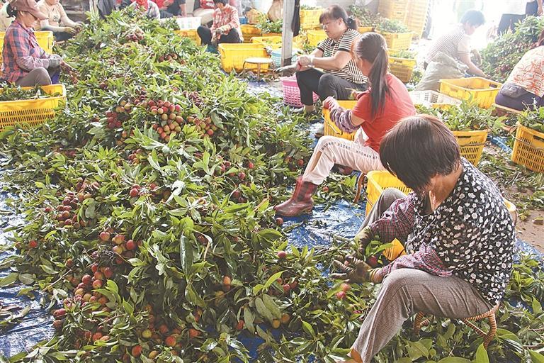 果农正忙着分拣荔枝。