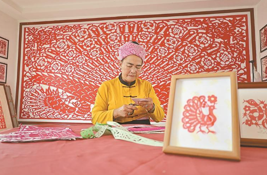 清晨的阳光洒在一幅幅精美的剪纸上,在芒市风平镇弄么村的青砖墙上投下灵动光斑。走进国家级非遗傣族剪纸传习点,一幅幅红纸雕琢的奇景展现在眼前。竹篾桌前,62岁的国家级非遗传承人邵梅罕手中的银剪如同活水,在红纸上游走,叶脉的精巧纹路于刀锋下流淌。在这片被傣族深情唤作“勐焕”的土地上,她用一把剪刀裁开岁月的尘封,为千年剪纸技艺注入新鲜血脉,在乡村振兴的壮阔画卷中裁出了非遗传承的新生图景。