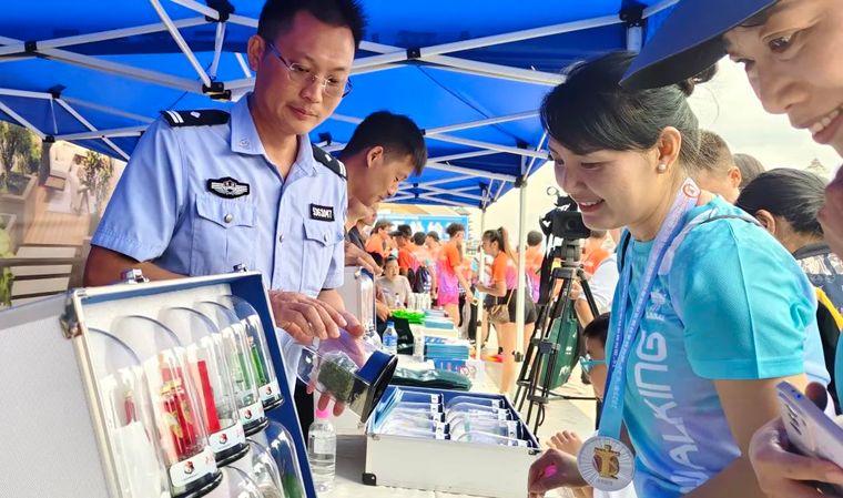 “这是一种新型毒品,它叫摇头丸,吃了它会不眠不休,会导致精疲力竭,甚至会呼吸衰竭。”活动现场,工作人员向大家作禁毒知识讲解、仿真毒品展示。公安、司法、检察院、法院、市场监管等成员单位和相关企业在活动现场设置了禁毒宣传专区,围绕“防范青少年药物滥用”全民禁毒宣传月主题,通过禁毒宣传展板、毒品仿真模型展示,宣讲禁毒知识、开展互动游戏,重点科普毒品的种类和危害,告诫广大青少年自觉做到远离毒品,防范涉麻醉药品、精神药品等成瘾性物质滥用,巧妙将禁毒宣传融入赛事,掀起了全民禁毒宣传的热潮。