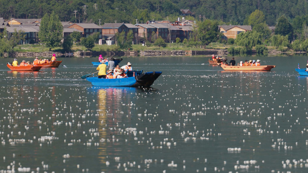 水清、花繁、夏凉,在增加观赏体验的同时,也为当地居民带来了实实在在的生态红利,在离大片花海最近的普洛码头,每天有近千名游客从这里出发,踏上“追花之旅”。“这几天的游船,每天出湖150至200船次。按以往的经验,今年七八月份的游客量还会上升。”宁蒗县永宁镇落水村委会普洛村民小组组长付云欢说,为游客提供划船服务是普洛村的集体经济项目,全村百余户村民参与。仅去年,划船项目就实现总收入500万元,户均超过5万元。今年前5个月,村集体经济收入已达210万元,年收入有望超600万元。(丽江融媒 记者和丽星 李扬 宁蒗融媒 记者曹勇 朱晓龙)