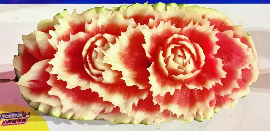 大赛以“‘如哩散洒’巧手雕果,匠心传承”为主题,吸引了众多果雕爱好者同台竞技。选手们以西瓜、哈密瓜、苹果等为原料,凭借精湛刀工与奇思妙想完成作品。经评委团专业评审,选手张彬摘得金奖。