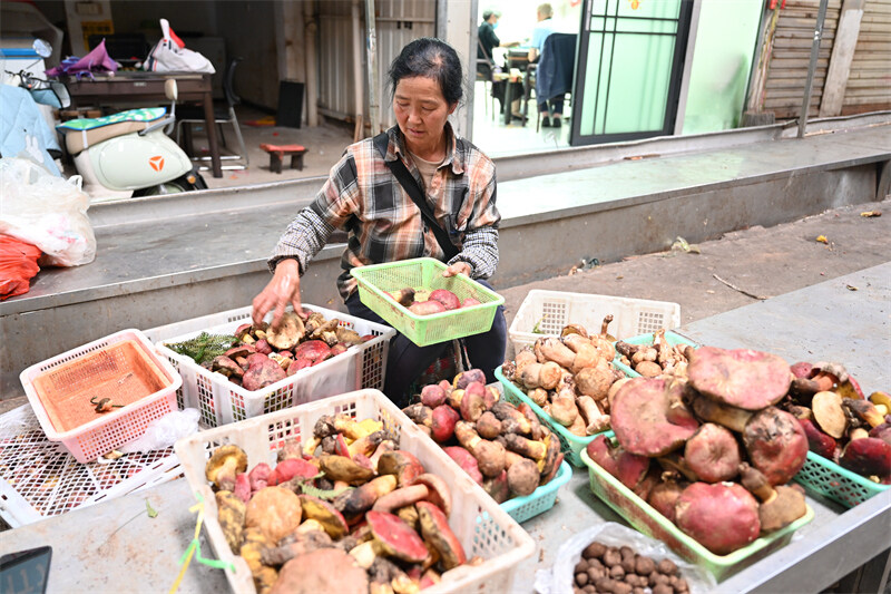 近日,随着雨水的增多,曲靖各县市区山林里野生菌如雨后春笋般破土而出,迎来上市旺季,曲靖城区各大农贸市场前来选购野生菌的市民络绎不绝。这些大自然的馈赠不仅丰富了人们的餐桌,也为当地百姓带来了可观的经济收入。