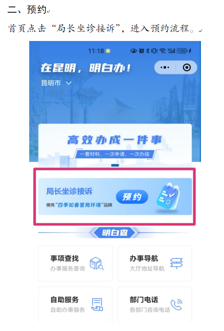 “挂号”方式:请在微信小程序搜索“明白办”—“局长坐诊接诉”服务专区进行预约“挂号”。
