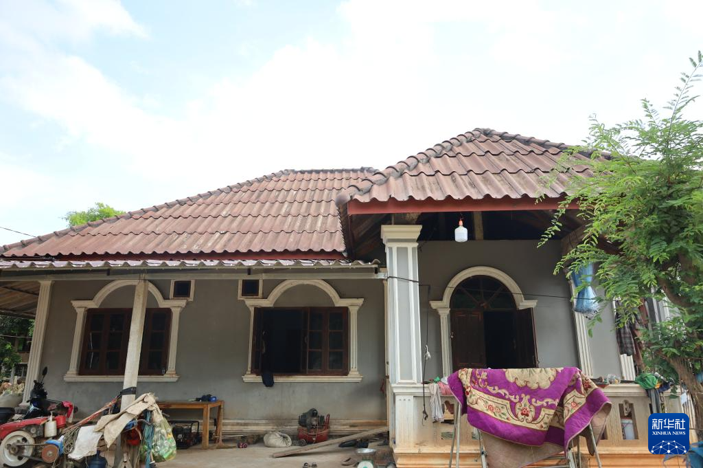 这是5月29日在老挝首都万象城郊的金花村拍摄的村民维康的新房。新华社记者 马淮钊 摄