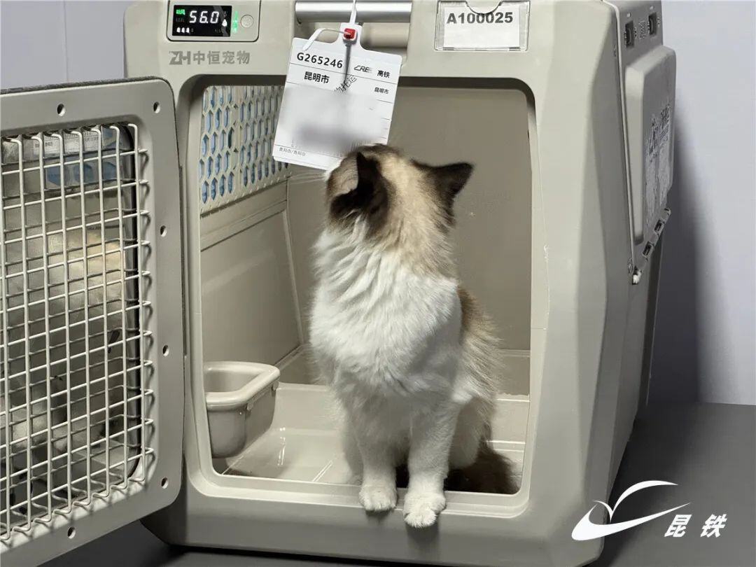 近日,昆明南站迎来了一位特殊的“旅客”——一只1岁半的布偶猫“雪球”,这是高铁宠物托运服务试点范围扩大后昆明南站的首单。