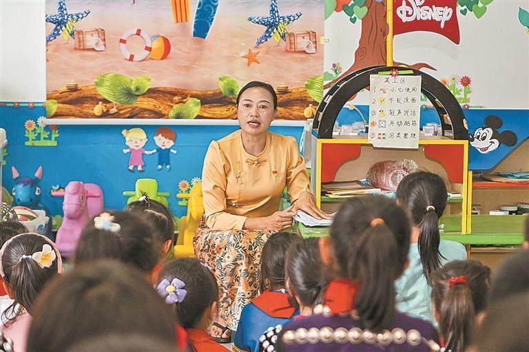 六十公里外,瑞丽市俄罗村委会的“儿童之家”,瑞应正在小心擦拭着贴满照片的墙壁,眼角的风霜无声诉说着十五载春秋的坚守。从代课教师转型儿童主任,她将村委会角落里几张破旧的桌椅,用双手和爱心打造成孩子们的快乐港湾。跳皮筋、捉迷藏、讲故事……欢声笑语中,孩子们的心扉渐渐敞开。