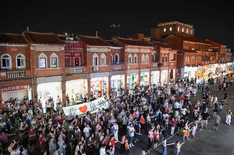 Tourists watch a performance at the historical center of Quanzhou, east China's Fujian Province, May 20, 2025. (Xinhua/Jiang Kehong)