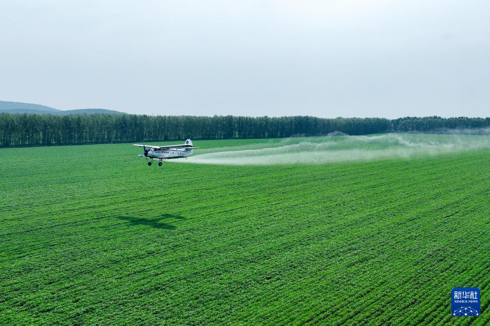 近日,黑龙江垦区北大荒集团各农业生产单位旱田航化作业陆续展开,为3000余万亩旱田作物生长“健身防病”,助力粮食增产丰收。