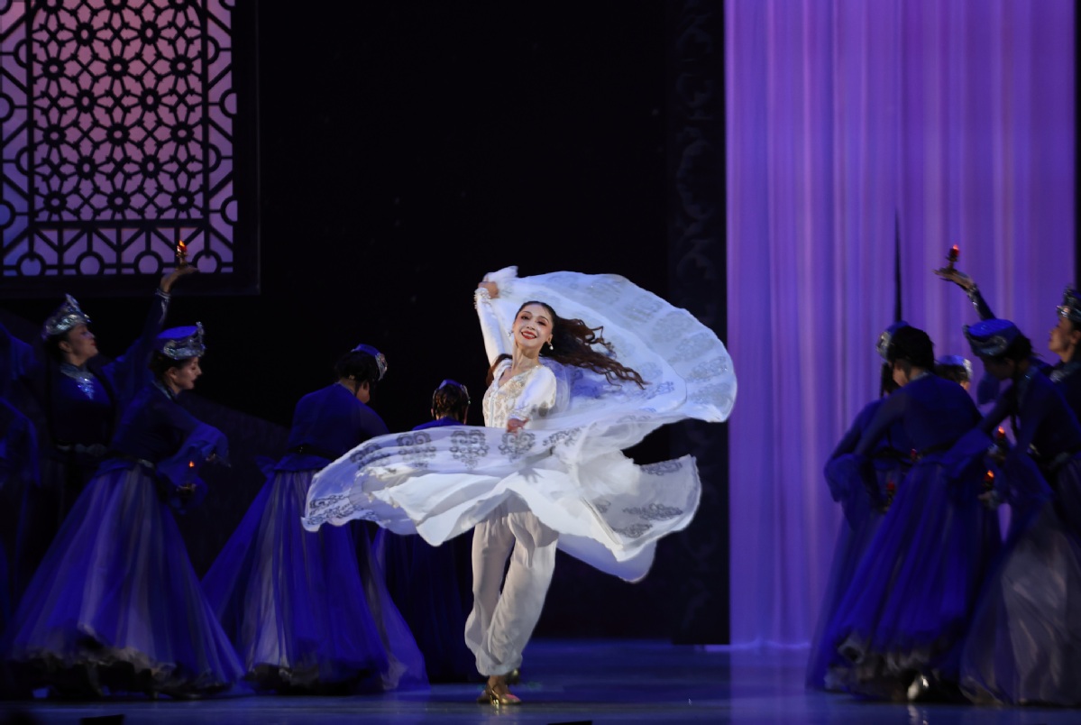 7月20日,在新疆人民会堂,演员在第七届中国新疆国际民族舞蹈节开幕舞蹈诗剧《在远方 在这里》上表演。中国日报 记者邹红 摄