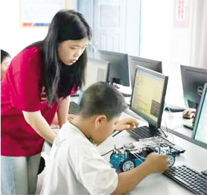 孩子们自主编写程序。华东师范大学软件工程学院供图