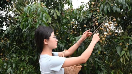 走进永康镇龙眼种植基地,连片的果树枝繁叶茂,沉甸甸的龙眼压弯了枝头。果农们正穿梭在林间,小心翼翼地采摘、分拣,脸上洋溢着丰收的喜悦。“今年雨水足、光照好,龙眼甜度比往年更高,刚上市就被订走了不少。”一位果农一边麻利地将果实装筐,一边高兴地说。