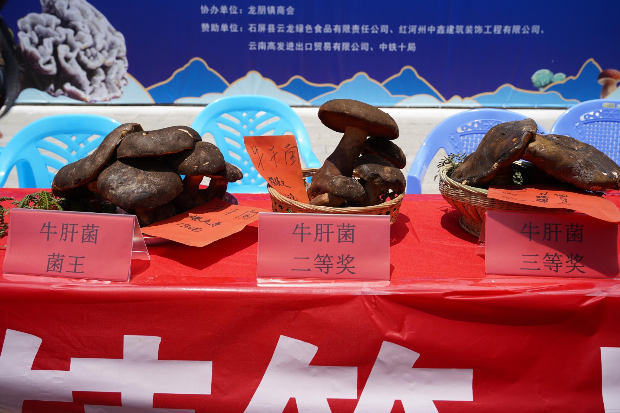活动现场人头攒动、热闹非凡,“菌界高手”齐聚比拼,空气中弥漫着野生菌的独特鲜香。选手们小心翼翼地将参赛菌子摆上展台,干巴菌、鸡枞菌、黄牛头菌、牛肝菌等精品野生菌异常抢眼,有的以硕大个头取胜、有的凭饱满形态吸睛,个个铆足劲争夺“菌王”头衔。经过多轮严格评选,四大菌种“菌王”脱颖而出——干巴菌王重达2020克,以“扎实体格”稳居榜首;鸡枞菌王凭借850克重量,展现“菌中珍品”实力;黄牛头菌王以980克的个头在同类中拔得头筹;牛肝菌王则展现了1980克的“大块头”。