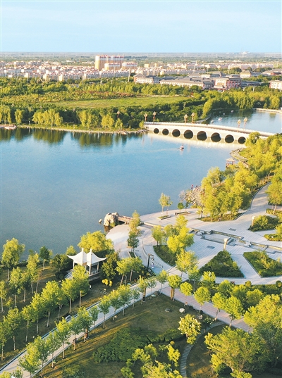 为守护母亲河,自2019年至今,玛纳斯县又累计投入5亿元,变废弃砂坑为湿地,化废料高坡作绿岛,将沿岸戈壁石滩细细缝补,“绣”出一条集形象展示、娱乐健身、休闲科普于一体的生态绿带。同时,引河入城的脉络更深更广,贯通南北,“五百米见游园,一千米有公园”,亭台水榭相映成趣,构建起各自成景、浑然一体的园林水系。“国家园林县城”“全国生态文明先行示范区”等桂冠,正是这座小城凤凰涅槃般蜕变的最佳注脚。