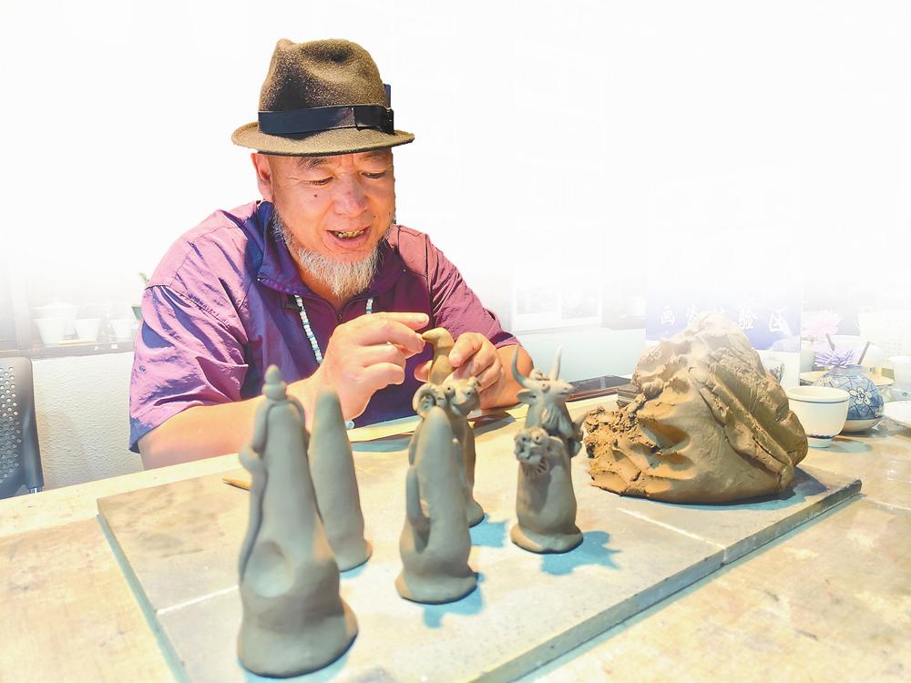 制作东巴泥塑。