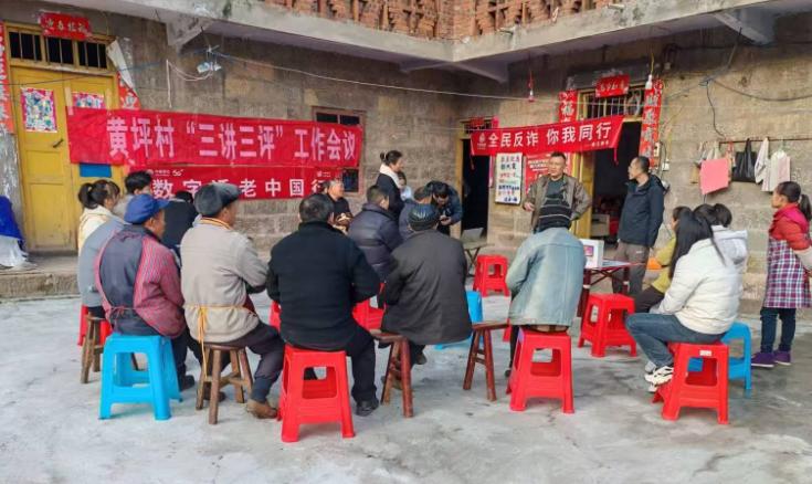 黄坪村党总支书记余明川说:“帮扶工作队作风过硬,工作扎实,乡土情结浓厚,深受黄坪村民欢迎。”多少个傍晚,在群众院坝里,驻村工作队员与村民围坐一圈,以“摆龙门阵”的形式讲解惠农政策。工作队紧扣绥江县委、县政府“六话六明”要求,将政策宣讲融入群众日常生活,通过“院坝会”“小课堂”“三讲三评”等互动载体,把党的二十大和二十届三中全会精神、乡村振兴政策和法律法规转化为通俗易懂的“农家话”,让党的政策“好声音”传遍村村组组。