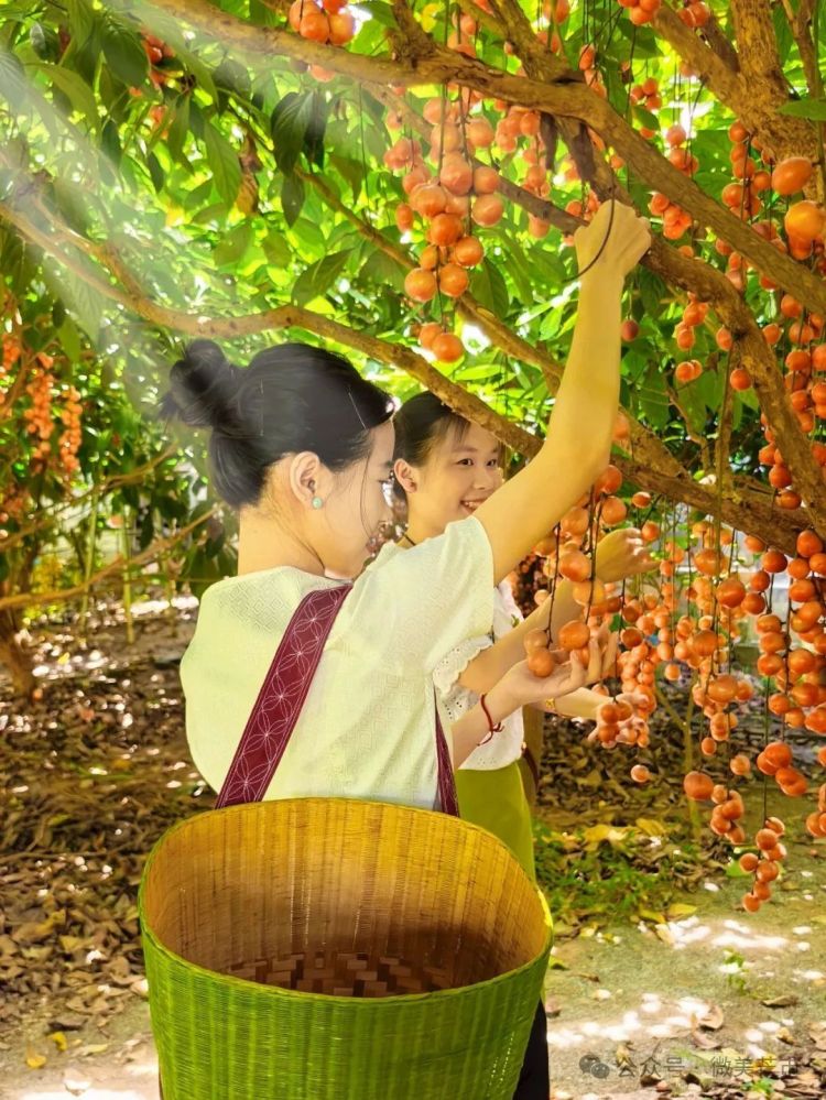 不同于商业化果园,芒里村的木奶果采摘充满着傣家“人情味”。随便走进一户傣家庭院,朴实好客的主人会带你来到自家后院。抬眼望去,卵形果实像小灯笼般悬挂着,有的青中透黄,有的金黄发亮。主人家递上竹编果篮和特制采果竿,教你用传统方式采摘果子。“木奶果从上熟到下,要先摘上面晒着太阳、表皮泛着蜡光的,这样的果子才甜!”村主任岳二相保介绍。