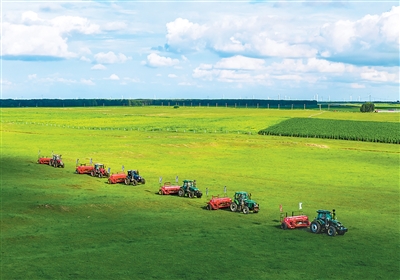 内蒙古自治区通辽市扎鲁特旗“三北”工程林草湿荒一体化保护修复项目现场,一派繁忙景象。该项目通过应用科学修复技术、创新管护模式、强化多主体协作,系统推进退化草原综合治理与再生修复。刘玉才摄(人民视觉)