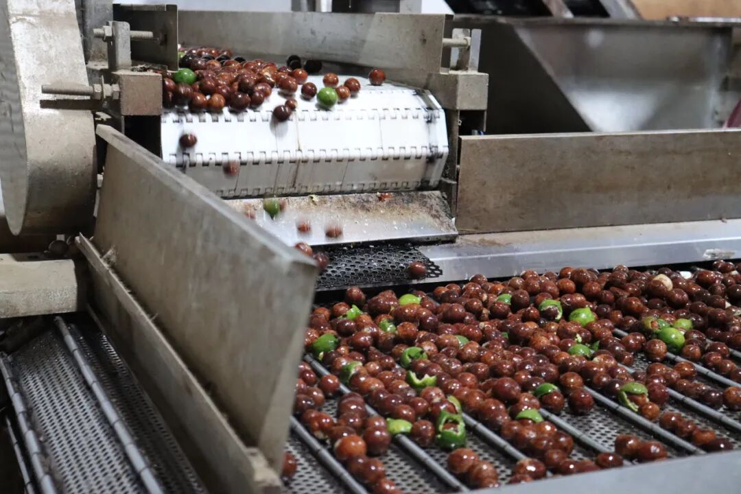 每年8月至10月是坚果集中采收期,也是加工厂初加工的关键阶段。工人们熟练操作设备,将带青皮的坚果送入脱壳机去皮,再经清洗设备去除杂质、送入烤房烘干,最后分级筛选,完成初加工。10月至次年2月则转入精细加工,通过开口、杀青、入味、二次烤干、包装等工序,生产出香草、奶香、原味三种口味的坚果产品,发往全国各地,满足不同消费者需求。