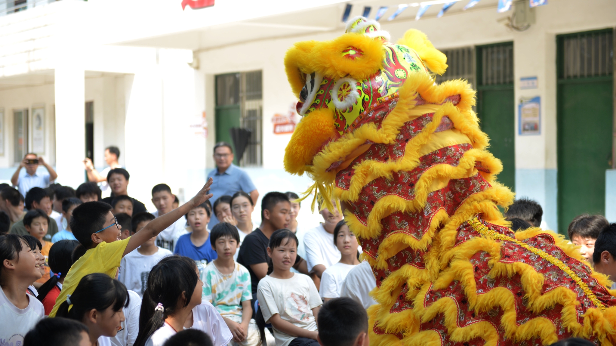 (图为庐州年氏狮舞与学生互动。 杨治国/图 中国文化报 记者 孔令晖/文)