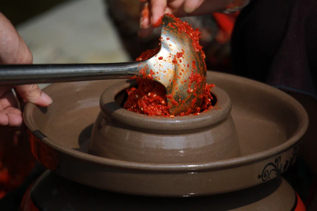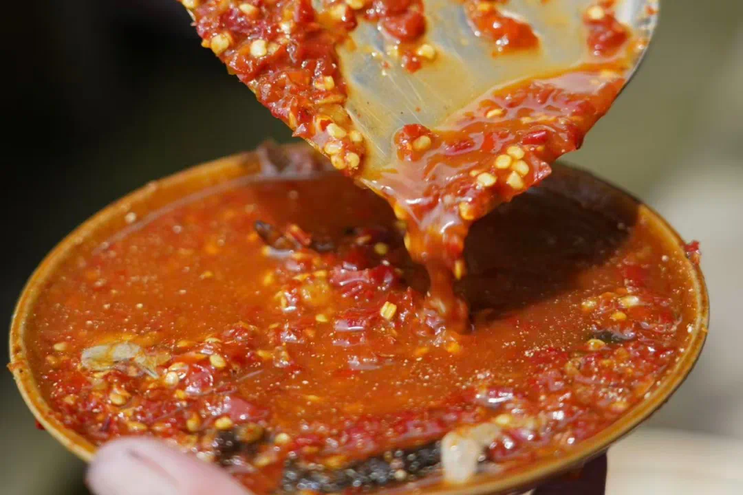 鱼酱酸主要以无鳞小河鱼为主要原料,加以适量的红辣椒、花椒、姜、盐、酒等腌制而成。鱼酱酸是丹寨地区的苗族在长期生活和实践中发明的一种统美食,因其制作程序不复杂、适应人群广、保质时间长、助消化,去腥,提味生香,酱香爽口,增强食欲等特点。