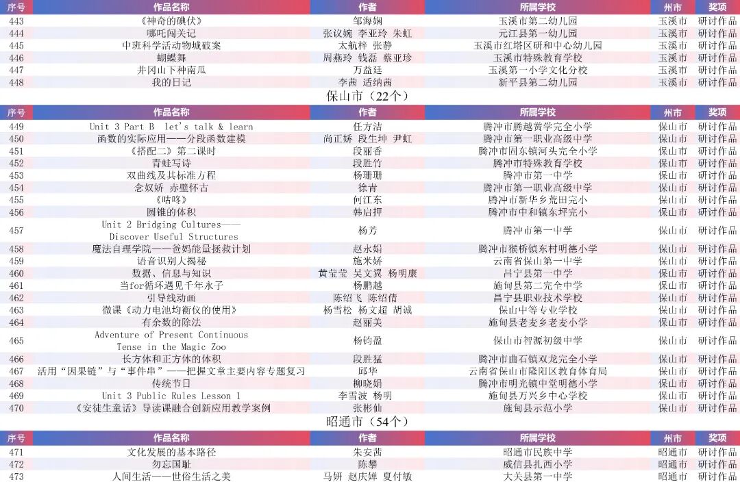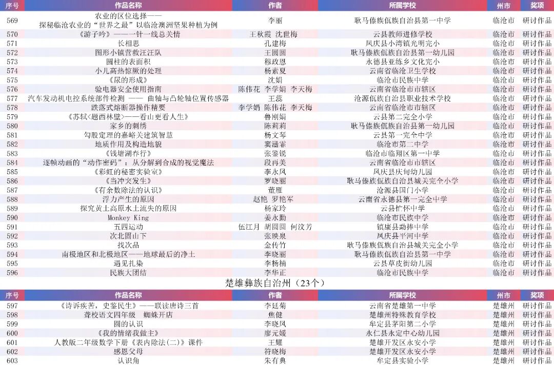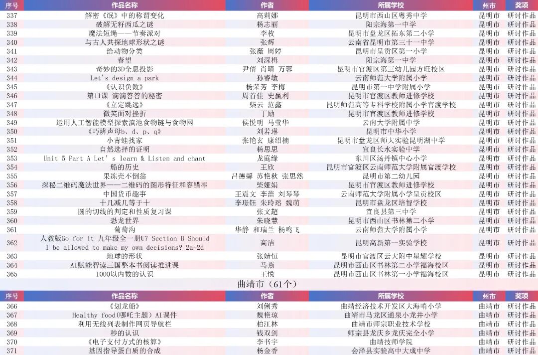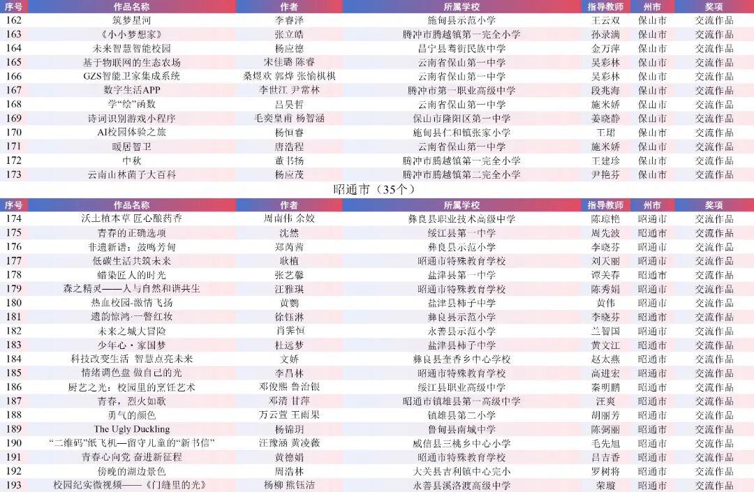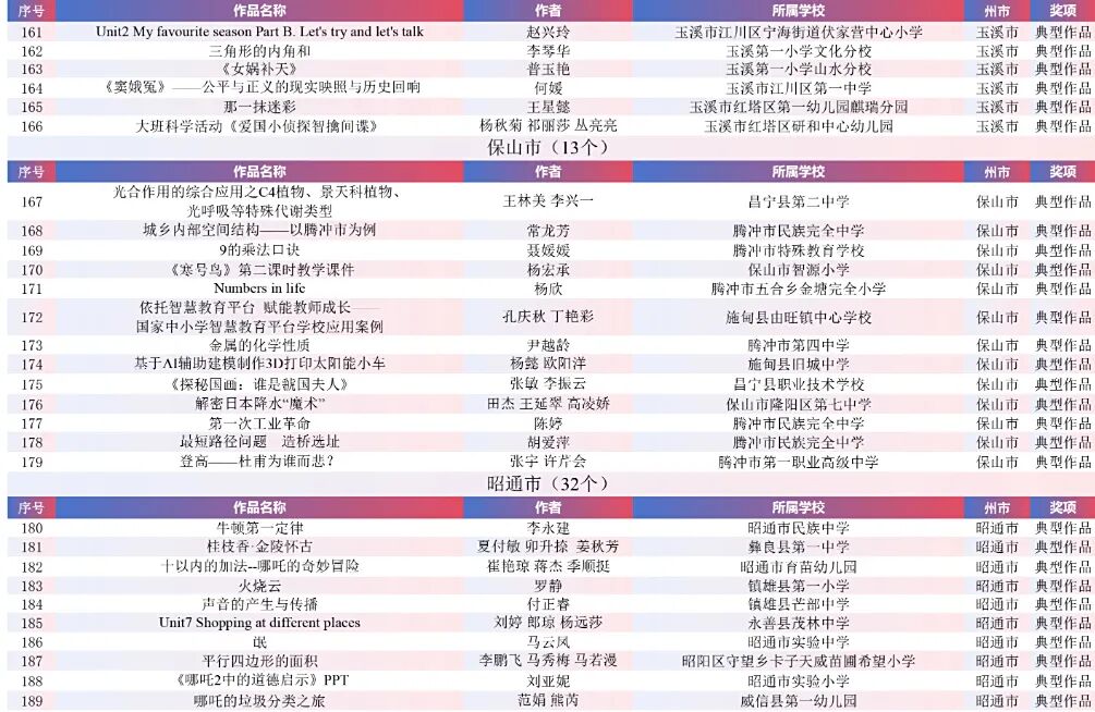 9月15日,云南省教育厅公示了“2025年云南省师生数字素养提升实践活动交流展示名单”。经各州市推荐,专家线上遴选、线下集中复审等,共推荐出教师活动80件创新作品、240件典型作品、480件研讨作品;学生活动80件创新之星作品、240件交流作品、480件参与作品。现将名单予以公示。