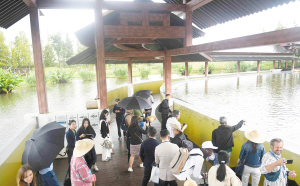 外媒嘉宾代表在宝丰湿地参观。记者赵伟/摄