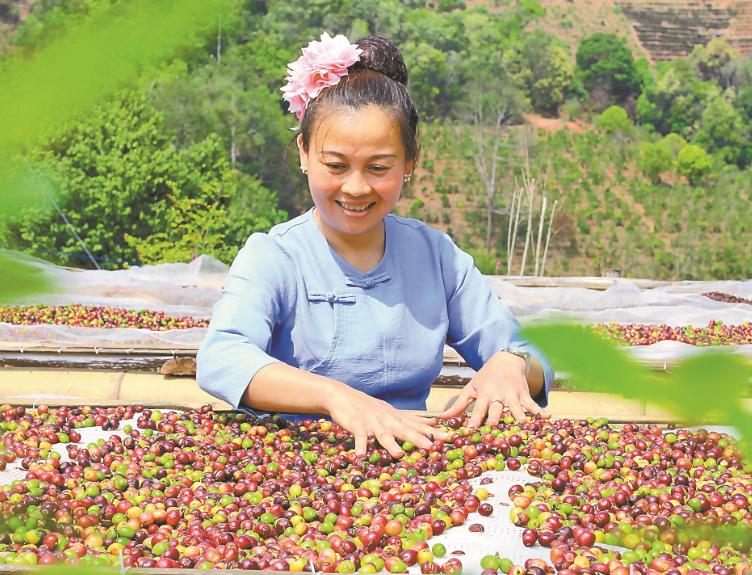 孟连咖农晾晒咖啡豆。云南日报记者 沈浩/摄