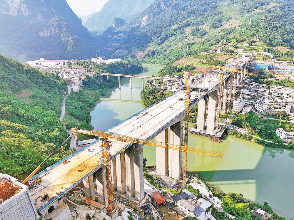 渝昆高铁全长约700公里,其中云南段长388.6公里,设计时速350公里,是云南省内首条时速达350公里的高速铁路。随着盐津南站白水江特大桥合龙,渝昆高铁桥梁施工进度已超96%。(云南日报 记者胡晓蓉)