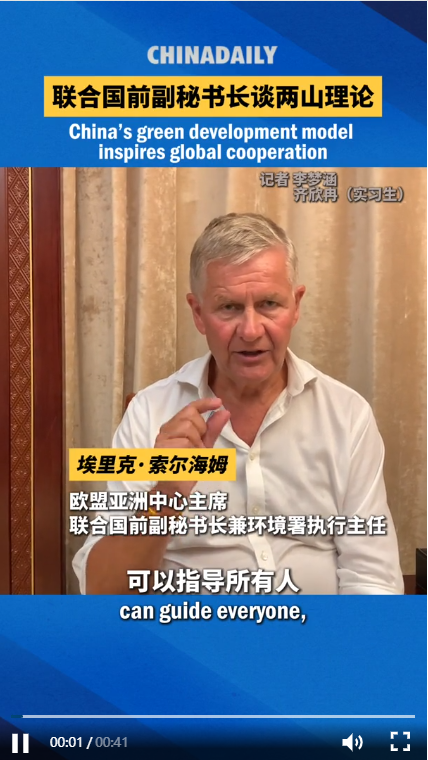 联合国前副秘书长点赞“两山”理论 呼吁全球绿色合作