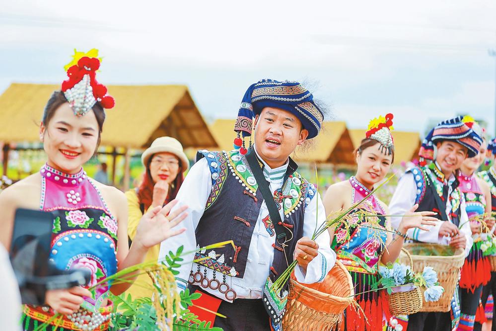 少数民族同胞送上祝福。 本报记者 胡妤雅 摄