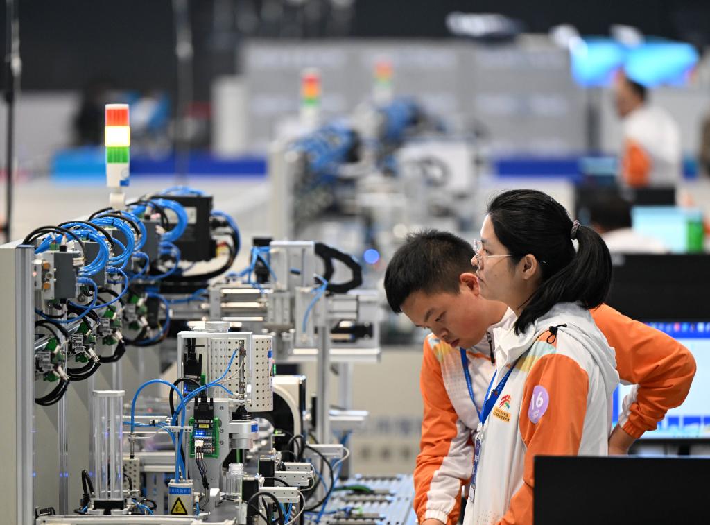 这是在位于河南省郑州市的郑州航空港区比亚迪总装工厂拍摄的新能源汽车“宋Pro”生产线。基于工业互联网技术,比亚迪郑州工厂构建了一条智能制造生态链,实现生产计划排程、工艺参数设置、各个车间数据实时联动、产品检测复核、发送运输到货等全流程数字化管控。
