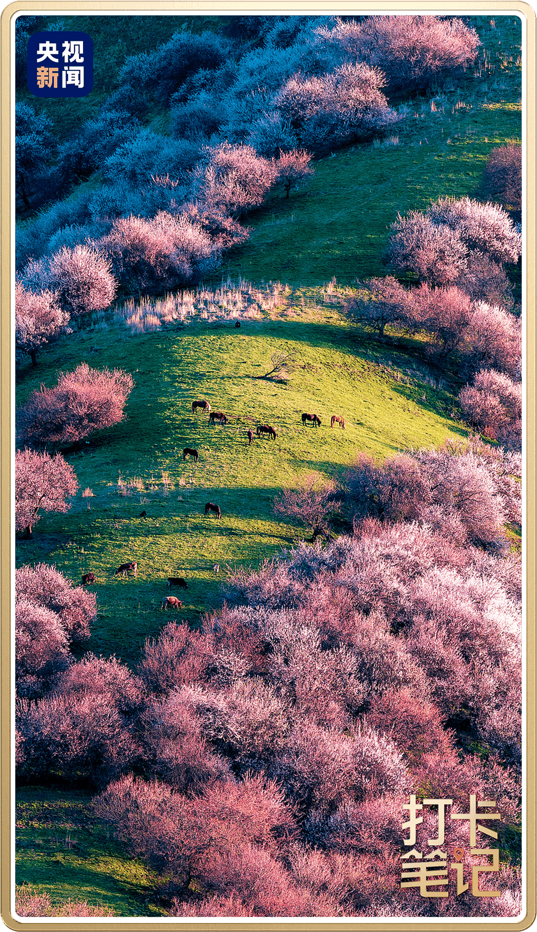 每到初春,伊犁吐尔根乡杏花沟的杏花如潮水爬满山坡,拉开花季序幕。