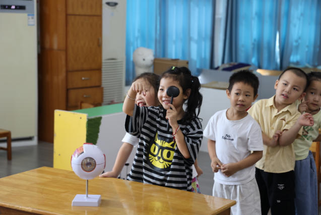 幼儿园的孩子们在观察眼球模型。通讯员 陈霞芳 摄