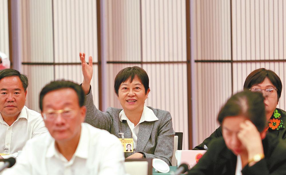常委会组成人员在会上开展询问。 本报记者 黄兴能 摄