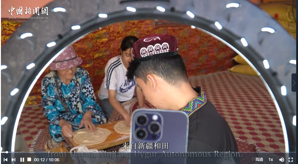 “有些人不知道新疆的真实情况,有一些偏见。我想打破这种偏见,然后把家乡的好东西卖出去。”扎克说道。在工作日,他是一名普通文员;业余时间,他便化身短视频博主“浓眉阿达西”,用接地气的幽默段子,记录家乡的日常,展现新疆的少数民族文化魅力。