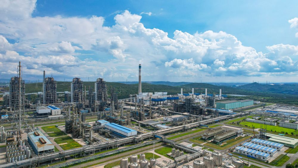 这是2025年7月23日在山西省长治市拍摄的潞安化工集团煤基清洁能源公司厂区全景(无人机照片)。新华社发