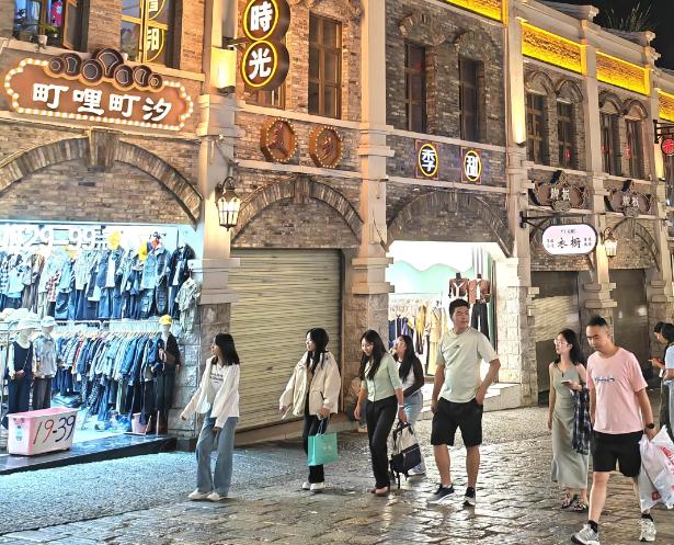 游客在昭通古城陡街享受清凉时光。记者沈迅 摄