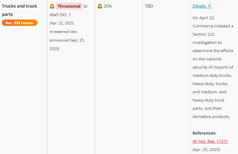 今年早些时候,特朗普政府对卡车进口启动了所谓的“232条款”调查,以“确定对国家安全的影响”。