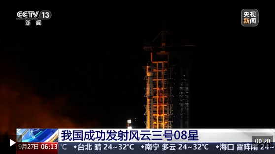 9月27日3时28分,我国在酒泉卫星发射中心使用长征四号丙运载火箭,成功将风云三号08星发射升空,卫星顺利进入预定轨道,发射任务获得圆满成功。这次任务是长征系列运载火箭的第596次飞行。