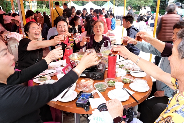 “吃百家宴,纳百家福,成百样事,享百年寿”。饭桌上,平时不认识的邻居之间,熟络了;之前有误会的楼上楼下,也解开心结。大家你来我往,觥筹交错,一起拉着家常,唱着歌,场面热闹非凡,欢声笑语不绝于耳。