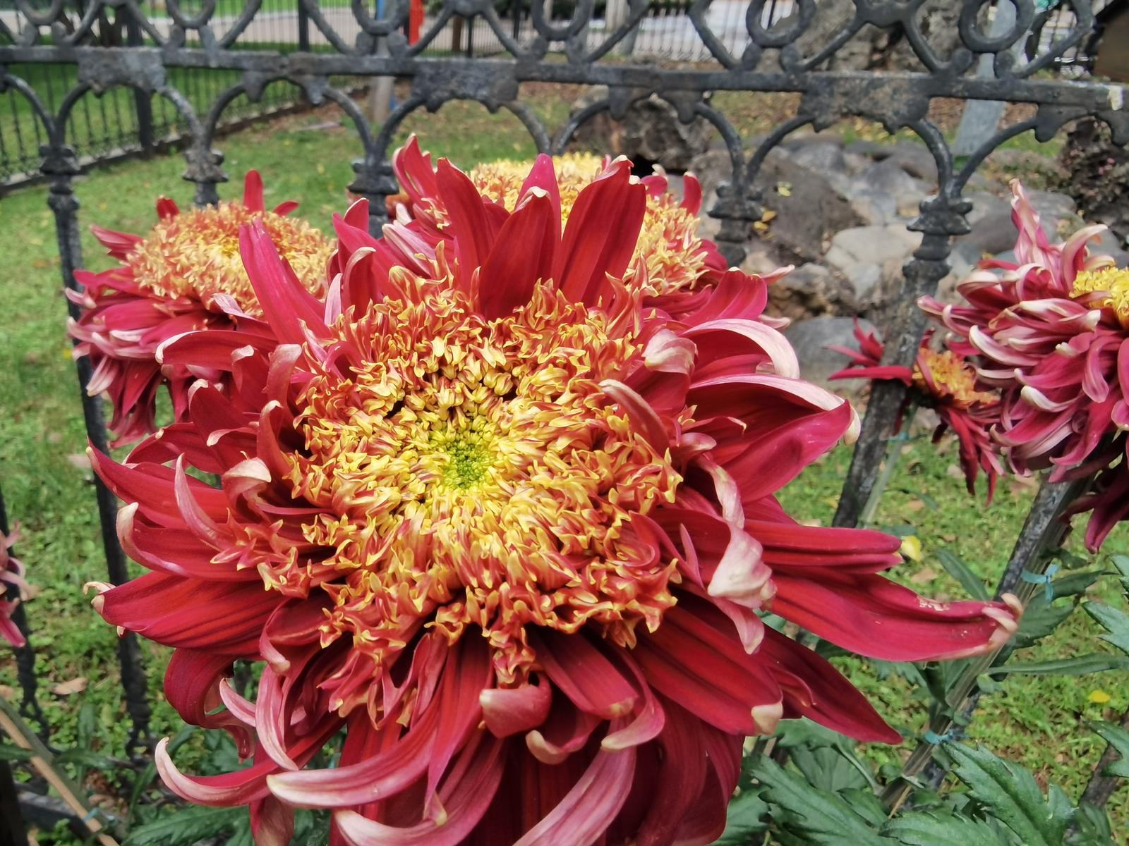 在近华浦区域的圆形睡莲池周边,将展出8个由公园职工精心绑扎而成的菊花立体造型柱,环绕水景,形成水映花姿、花增水韵的景观。近华浦主路及支路草坪区域,设置系列展架,陈列包括球型、管状、飞舞型、丝状型等形态各异的菊花精品,共计300多个品种,其中,绿萍、绿沙等稀有绿色菊品种惊艳亮相。