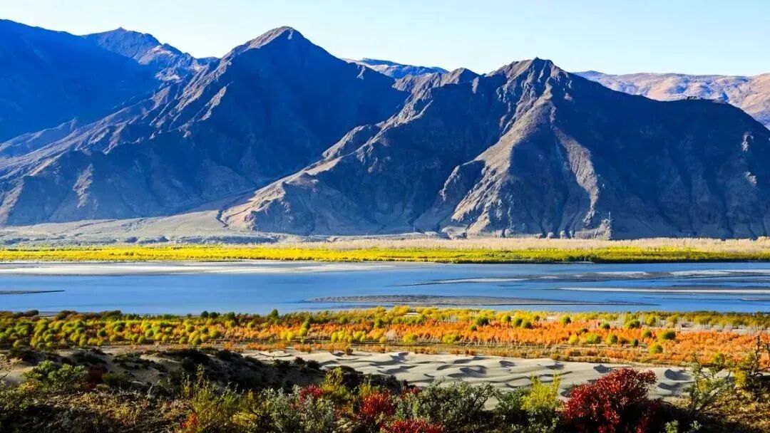 秋天的雅鲁藏布江冷静沉稳,和夏天的奔腾滂沱完全是两个性子。