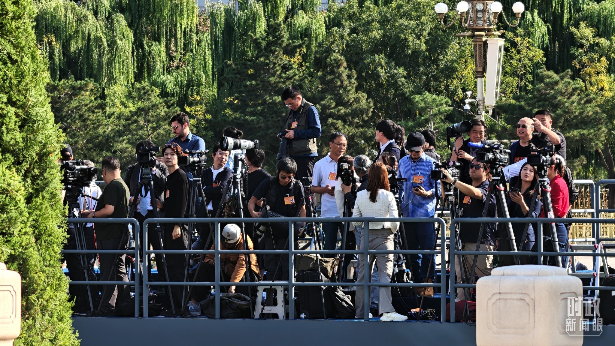 △9月30日,天安门广场上现场报道的记者。(总台央视记者鄂介甫拍摄)