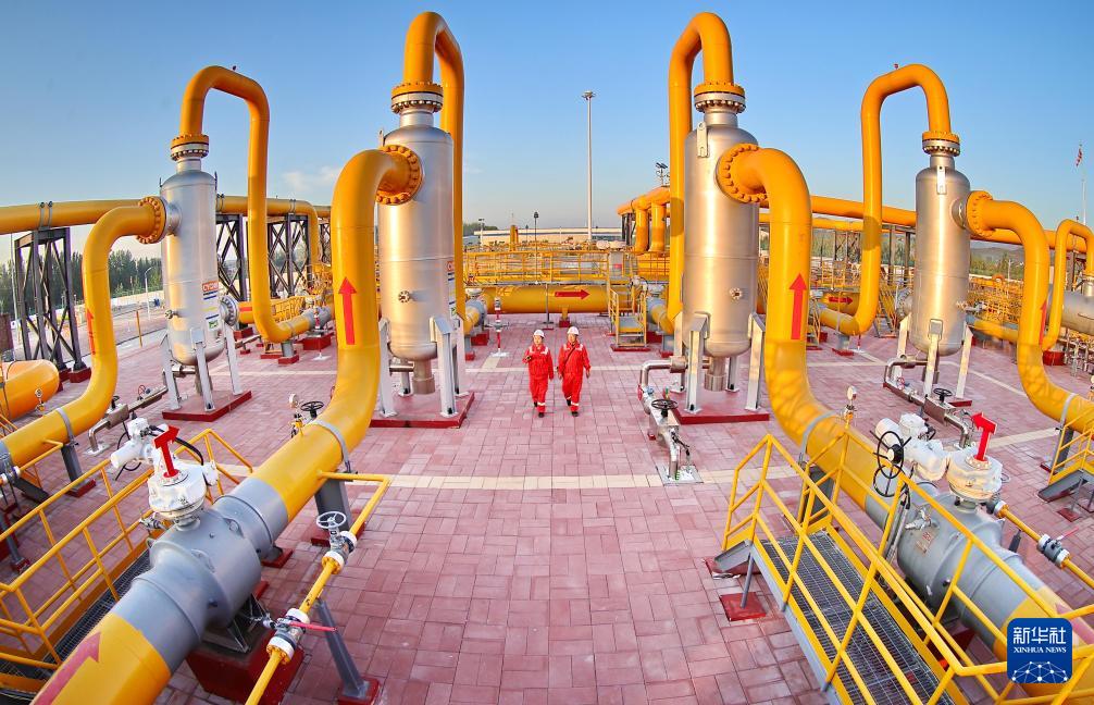 10月1日,在河北省秦皇岛市海港区的国家管网北方管道秦皇岛作业区,技术人员在对“北气南下”能源大通道线路设备进行日常巡检。