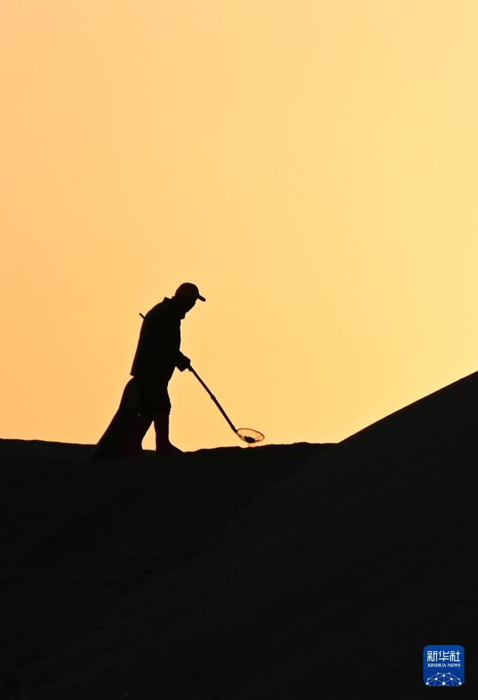 10月1日,保洁人员在甘肃省敦煌市鸣沙山月牙泉景区保洁。